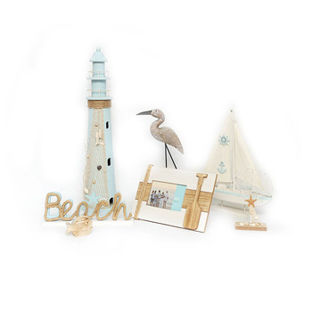Phare méditerranéen bleu blanc MDF, artisanat de décoration, 11x11x35cm